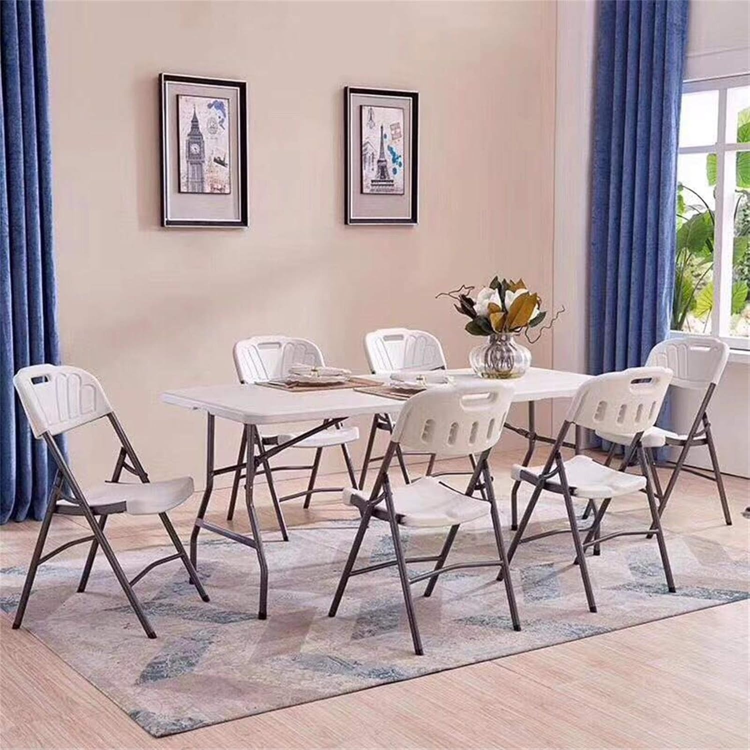 7-piece folding dining set with 1 table and 6 chairs. Great for events and picnics.