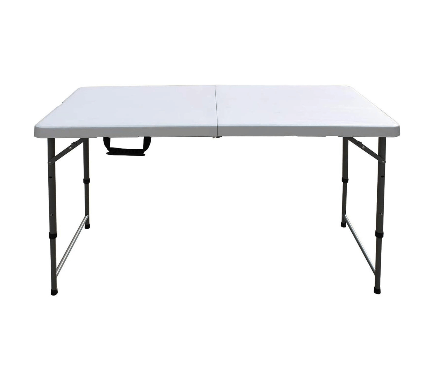 122cm white folding table with adjustable height for flexible use indoors or outdoors.
