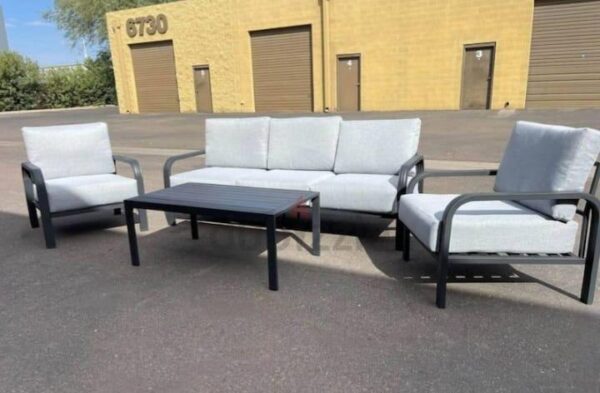 Indulge in outdoor comfort and style with the Beige Rope Weave Outdoor Lounge Set. This inviting collection is characterized by its elegant beige rope weaving, meticulously crafted to form the armrests and backrests of each piece, adding a touch of sophisticated texture. The robust frames are finished in a dark, possibly black or charcoal, color, providing a sleek contrast to the lighter weaving and ensuring stability and durability in outdoor environments. The set features plush, beige cushions that are designed for maximum comfort and made from weather-resistant fabric, making them ideal for long-term outdoor use without compromising on softness or appearance. Comprising a spacious 3-seater sofa and two generously sized armchairs, this lounge set offers ample seating for entertaining guests or enjoying peaceful moments outdoors. A rectangular coffee table with a clear glass top and matching dark base completes the ensemble, providing a convenient surface for drinks and decor. The Beige Rope Weave Outdoor Lounge Set is a perfect choice for enhancing any patio, deck, or garden area with its blend of modern design and comfortable functionality.