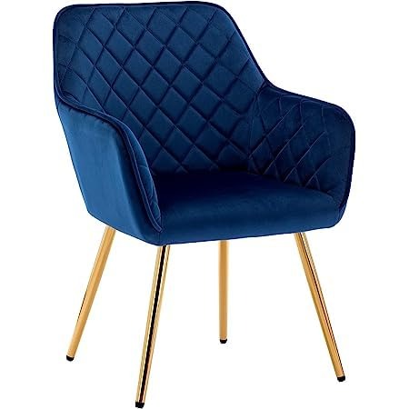 Add a pop of color to your space with this blue velvet dining chair. The gold legs and armrests provide extra support and elegance.
