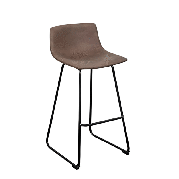 A stylish brown leather bar stool designed for comfort and support. It features a high backrest, built-in footrest, and a tall design suitable for coffee bars, dining counters, or office lounges.