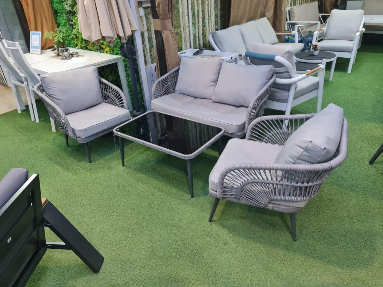 Elevate your outdoor living space with the timeless appeal of the Dark Brown Rattan Lounge Set. This elegant collection is crafted with durable, dark brown synthetic rattan weaving, providing a sophisticated texture that is both weather-resistant and easy to maintain. The robust, block-style construction of the frames ensures stability and a solid presence on any patio or garden. Sink into the comfort of the generously padded, light beige cushions, made from high-performance, weather-resistant fabric designed to retain their softness and color through varying outdoor conditions. The set includes a spacious 3-seater sofa and two comfortable armchairs, providing ample seating for entertaining or quiet relaxation. A matching rectangular coffee table with a dark tempered glass top completes the ensemble, offering a practical surface with a sleek finish. The Dark Brown Rattan Lounge Set is an ideal choice for enhancing any outdoor space with its blend of classic design, enduring comfort, and resilience.