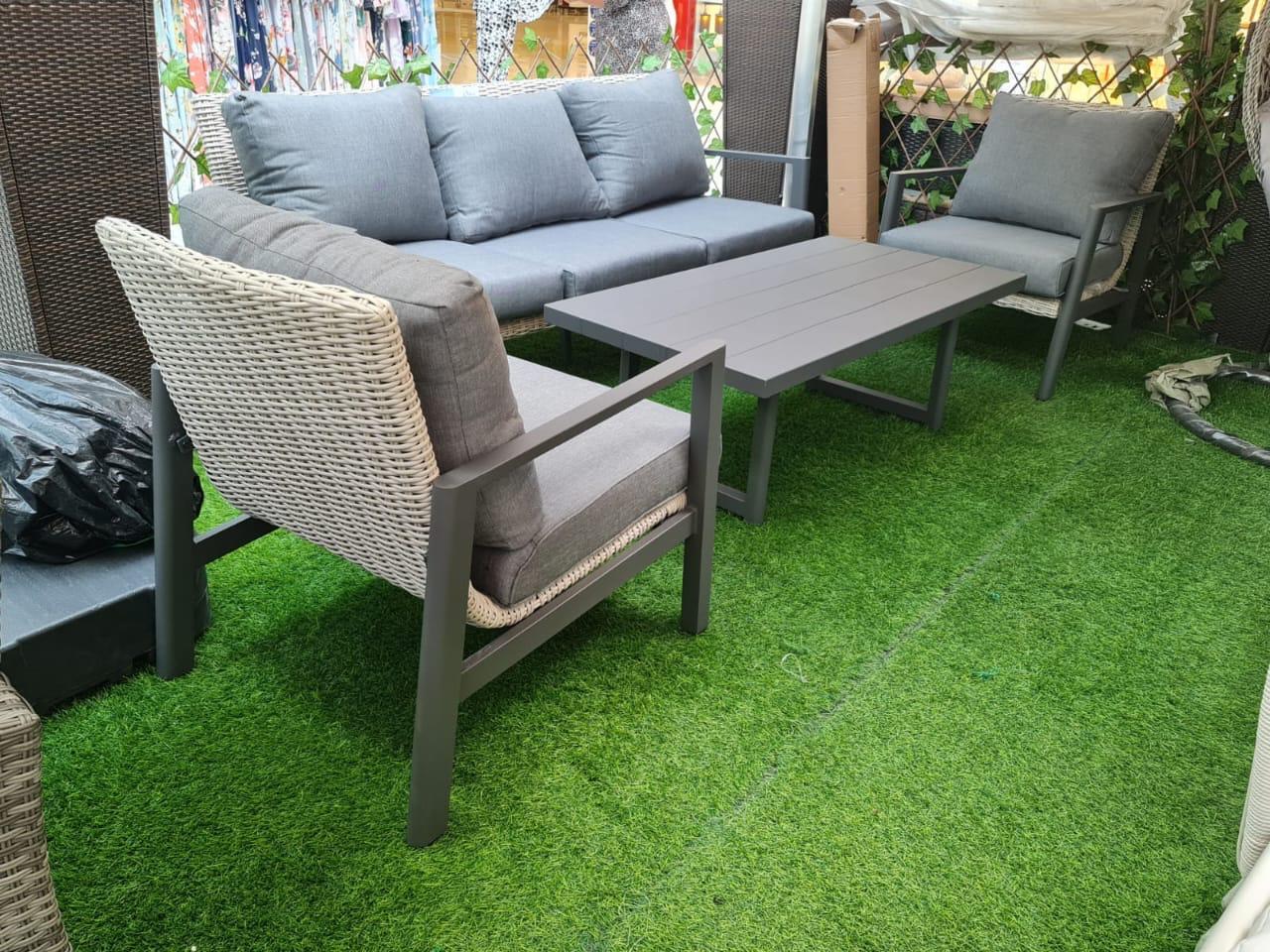 Be the first to review “Light Grey Wicker Sofa Set with Dark Cushions”