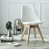 This chair features a clean modern design with wooden legs, making it perfect for living rooms, kitchens, or dining areas.