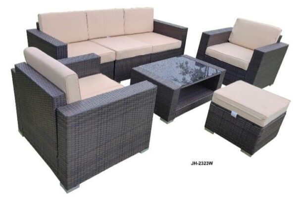 Elevate your patio or garden with the sophisticated Sedona Taupe Outdoor Lounge Set, designed for both relaxed lounging and enjoyable outdoor meals. This inviting collection features durable taupe-colored frames, likely constructed from powder-coated aluminium, ensuring excellent resistance to rust and weather. Complementing the taupe finish are stylish wood-effect accents on the armrests, adding a touch of natural warmth and refined elegance. Experience superior comfort with the generously padded, light grey weather-resistant cushions, which are designed to retain their plushness and color through various outdoor conditions. The set includes a comfortable 3-seater sofa, two inviting armchairs, and a multi-functional bench, offering flexible seating arrangements. A rectangular coffee table with a slatted taupe top completes the ensemble, providing a practical and stylish surface for drinks, snacks, or decorative items. The Sedona Taupe Outdoor Lounge Set is the perfect choice for those seeking a harmonious blend of sophisticated design, enduring comfort, and resilience for their outdoor living space.