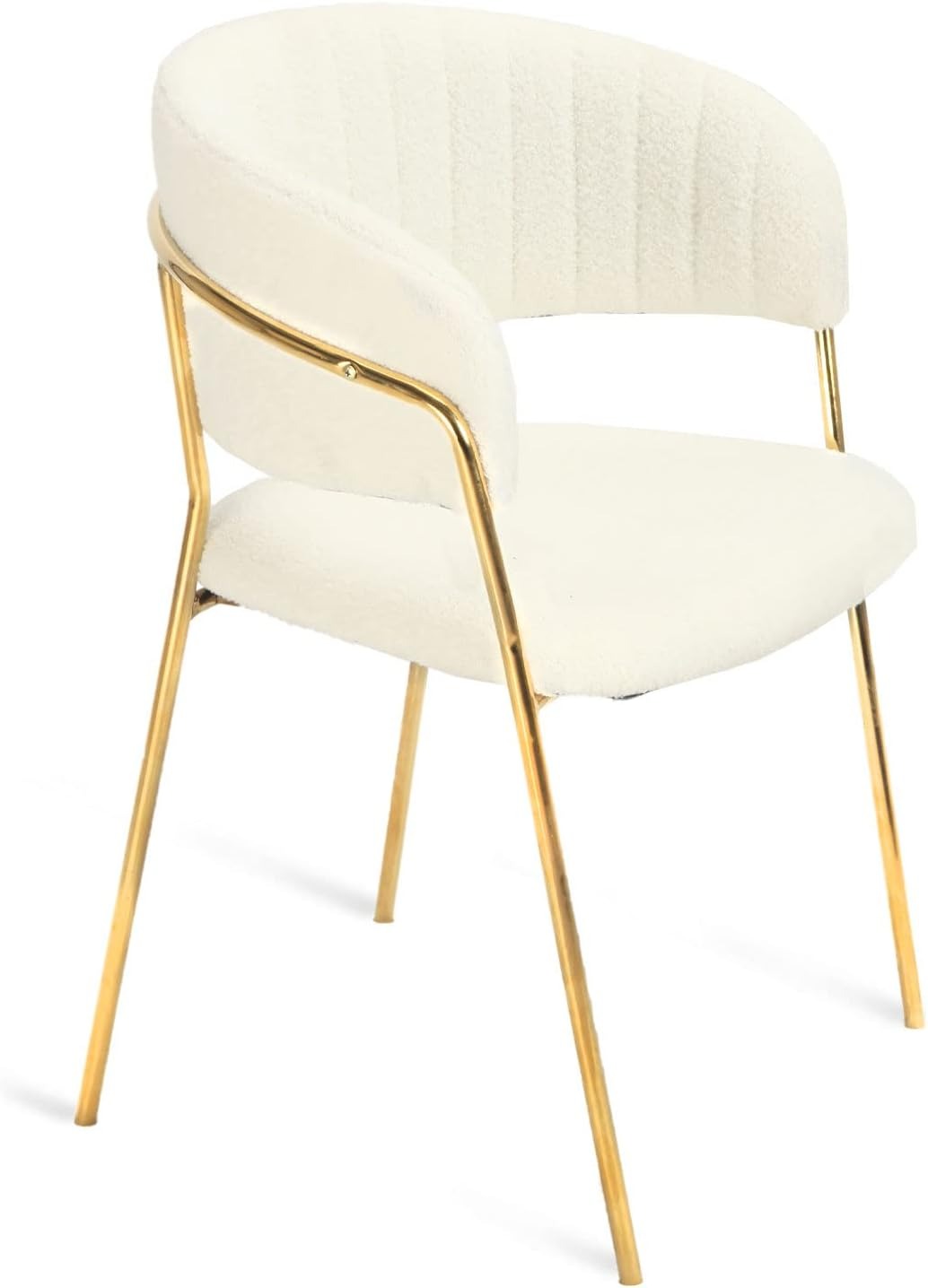 Indulge in plush luxury with the Cloud Embrace Dining Chair. Wrapped in soft cream boucle fabric with a gentle ribbed texture and supported by a gleaming gold frame, it offers unparalleled comfort and modern elegance.